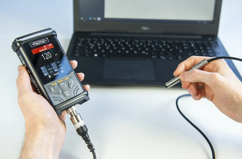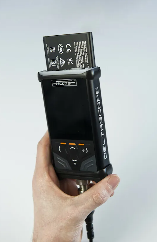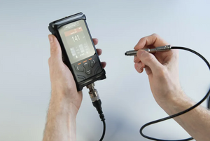 Robust and powerful handheld instrument for coating thickness measurement steel or iron according to the magnetic induction method (DIN EN ISO 2178) with interchangeable  probes.