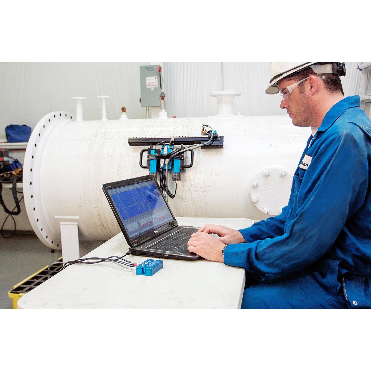 AUT Solutions was the first in the industry to design and manufacture modular style scanners to make repairs and modifications in the field easy and low cost to the customer. The AccuTrak is our latest scanner from this design concept that adds more flexibility than standard fixed wheels scanners. The AccuTrak is the first-ever "truly modular" scanner that offers both 3 or 2 axis versions and can scan just about any contoured ferrous surface. This scanner is steerable using a small handheld joystick or even your computer mouse.