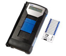 The analyzer contains a pump mechanism, microprocessor, optics, and software. The optics read the barcode on an inserted chip, and menu-driven instructions for the test appear on the analyzer's LCD. Each analyzer includes a data recorder that will hold the last 50 determinations in memory along with the time/date of the sample and a location code.