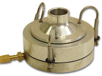 Sampler is constructed with aluminum components that are held together with three spring clamps and sealed with O-ring gaskets; impactor stage contains 400 precision-drilled orifices